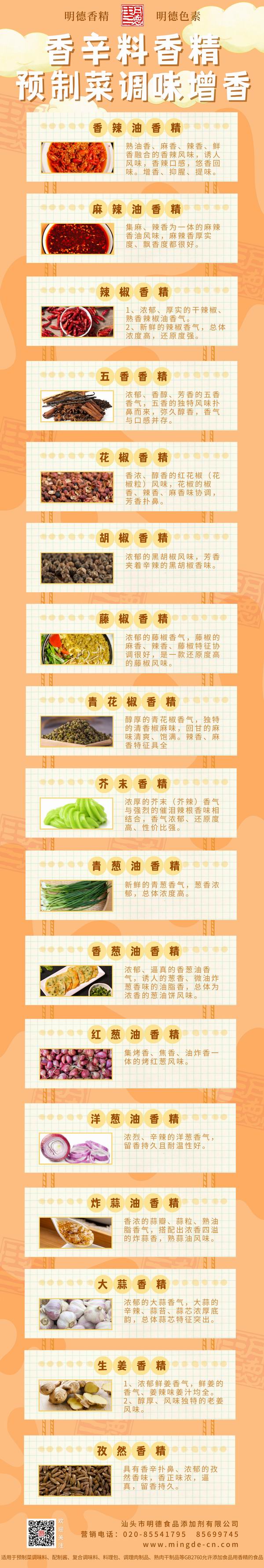 此外 明德食品添加劑 還研發(fā)了眾多香辛料風(fēng)味類香精,如小蔥、青蔥、炸蔥,如藤椒、花椒、麻椒等等,近10年來在復(fù)合調(diào)味料、腌料、醬料、火鍋底料多有應(yīng)用,頗受好評。諸如此類,各有特色。歡迎有興趣的廠家朋友們咨詢聯(lián)系!-